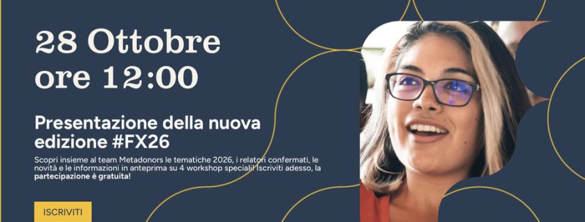 Questa alleanza si inserisce nel percorso verso Fundraising Experience (FX26), evento di alta formazione in programma dal 4 al 6 febbraio 2026 al Palazzo di Varignana (BO). Tra le iniziative collegate, l’ESG Connect – Social Pitch che offrirà a un gruppo selezionato di enti la possibilità di perfezionare il proprio pitch e presentarlo a manager ESG e dirigenti aziendali.