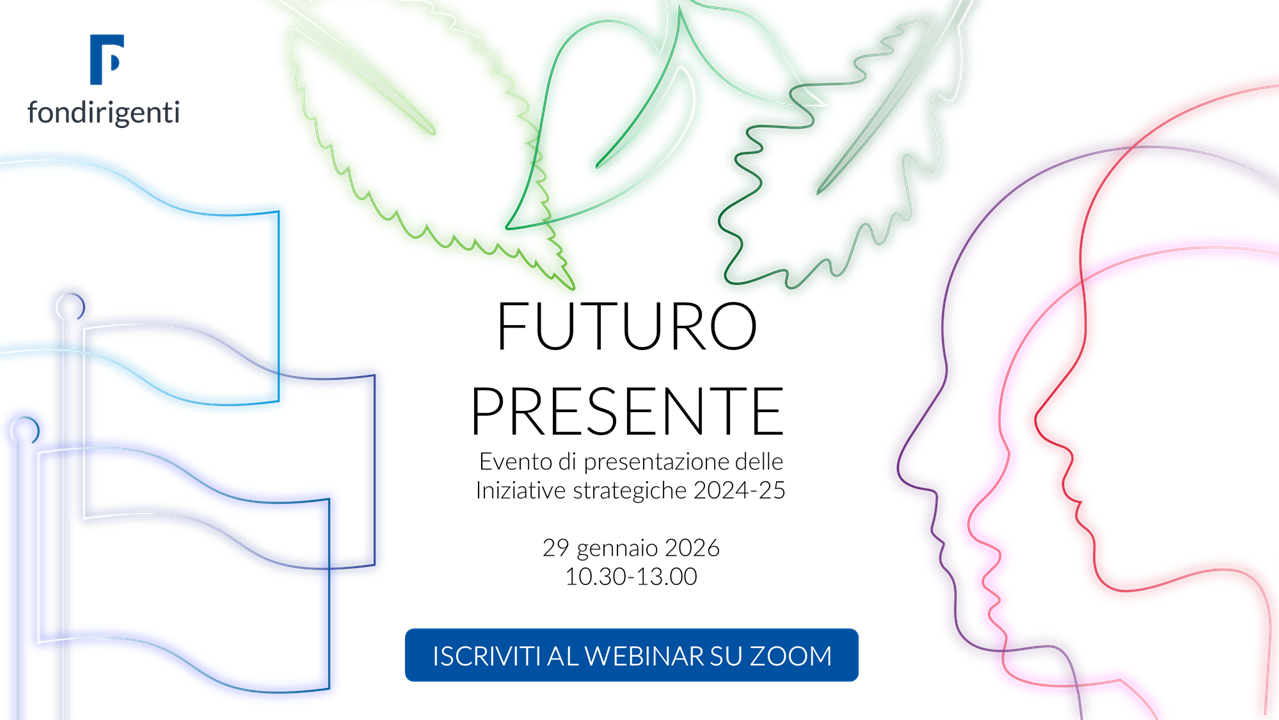 Il 29 gennaio 2026, dalle 10:30 alle 13:00, si terrà online su Zoom l’evento “Futuro Presente – Idee, Impatti, Innovazione”, promosso da Fondirigenti. Un appuntamento pensato come momento di sintesi e confronto sui risultati del biennio 2024–2025 delle Iniziative Strategiche del Fondo.