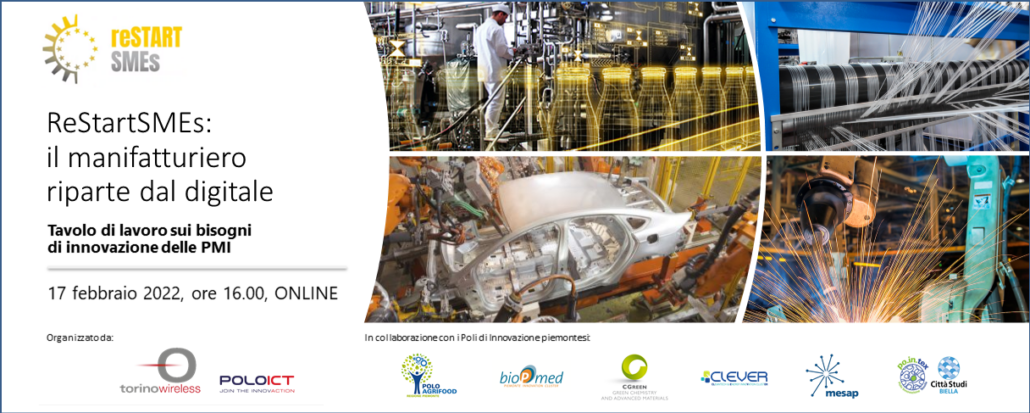 ReStart SMEs è l’iniziativa promossa dalla Commissione Europea per rispondere alla pandemia COVID-19 e quindi alla recessione economica. Il progetto mira a costruire la resilienza delle PMI manifatturiere nei settori dell’automotive, dei macchinari e delle attrezzature, dell’alimentare e del tessile, analizzando le loro esigenze di digitalizzazione e offrendo strumenti concreti per l’adozione di tecnologie moderne come l’AI, la robotica, la cybersecurity e l’IoT.